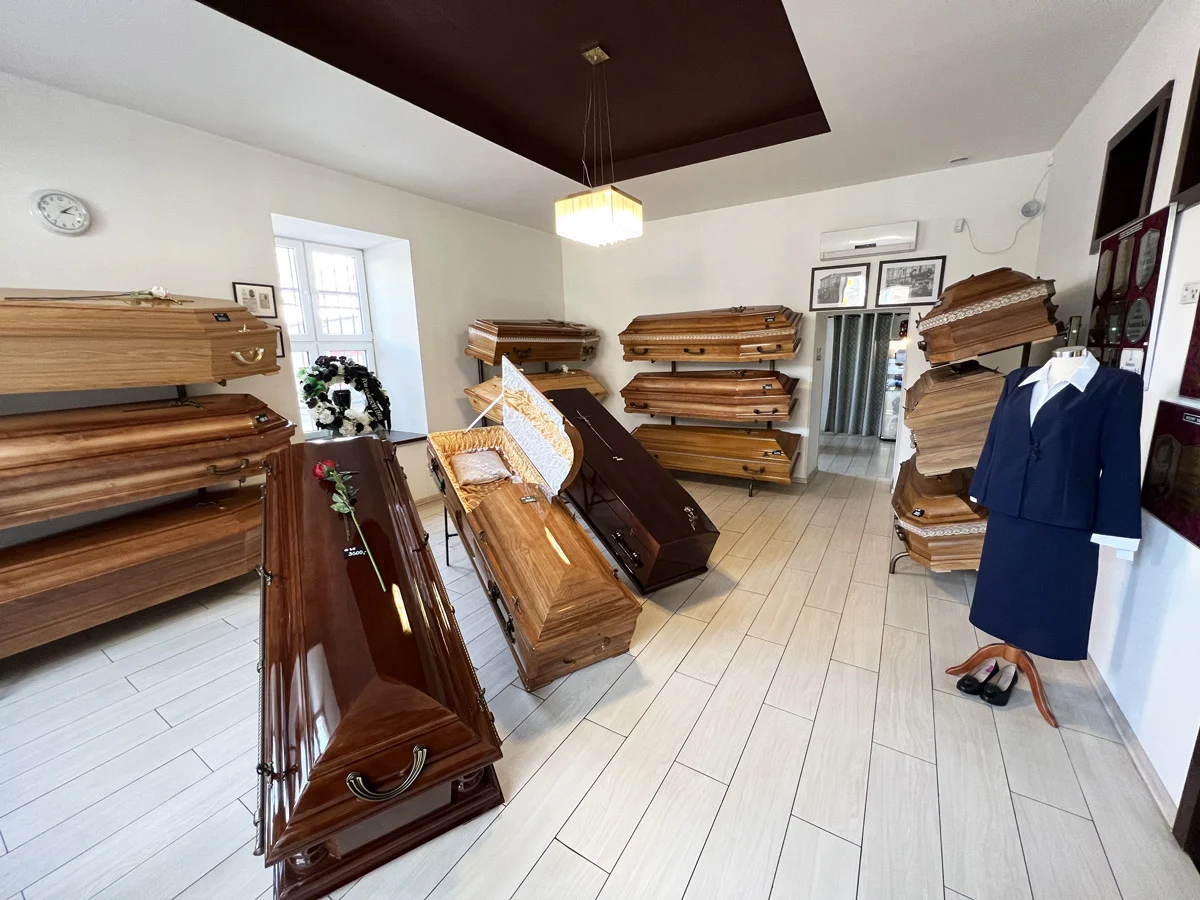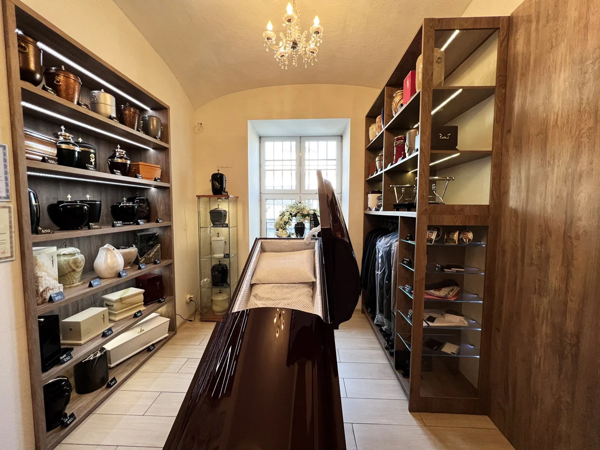 W ramach naszych usług proponujemy Państwu: - obsługę uroczystości pogrzebowych - przewozy zwłok w kraju i zagranicą oraz załatwianie formalności w imieniu rodziny - przechowanie zwłok we własnych chłodniach - organizacja pogrzebu ze spopieleniem zwłok - szeroki asortyment sarkofagów i trumien - sprzedaż wieńców i wiązanek pogrzebowych - kaplicę przedpogrzebową - sklep z odzieżą i utensyliami pogrzebowymi