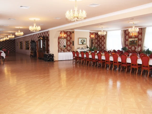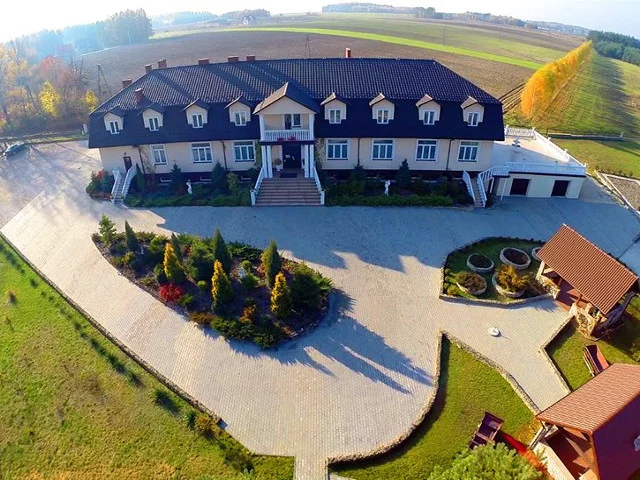 W budynku znajduje się przestronna klimatyzowana sala dla 200 gości oraz 17 pokoi dla 2, 3 lub 4 osób. Natomiast z obszernego tarasu można podziwiać mini zoo, ogrody różane, stary las i pobliski staw.